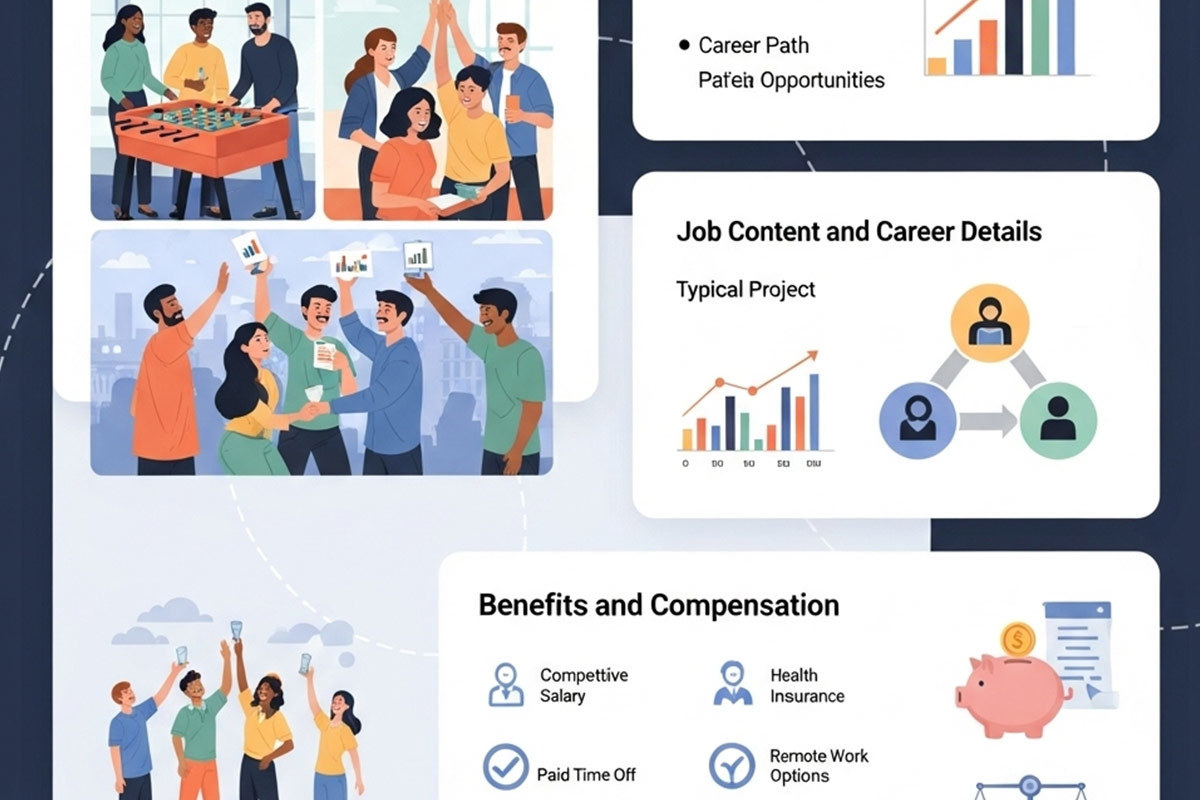 ここでポイントとなるのは、仕事内容を単に箇条書きにするのではなく、日常業務の流れやプロジェクトの進め方、チーム構成まで見せることです。例えば、あるIT企業では、エンジニアの1日のスケジュールを複数の写真で紹介。どのタイミングでどんなミーティングがあり、どんな裁量で業務を進められるかを見えるようにしました。その結果、応募者が「自分のスキルをどう活かせるか?」がイメージしやすくなり、ミスマッチが減少。